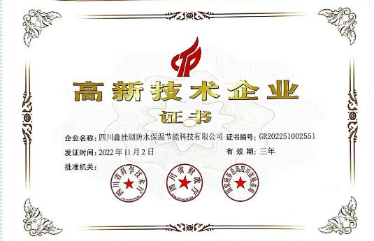 公司以創(chuàng)新性發(fā)展動力,旗下四川鑫桂湖防水保溫節(jié)能科技有限公司為高新技術(shù)企業(yè)和四川省“專精特新”中小企業(yè),取得“高性能生態(tài)防水材料工程技術(shù)研究中心”和四川省企業(yè)技術(shù)中心認(rèn)定。其中“CGP強(qiáng)粘蠕變型高分子防水卷材的研制及產(chǎn)業(yè)化應(yīng)用”成果經(jīng)科學(xué)技術(shù)評價,成果水平為國內(nèi)領(lǐng)先。